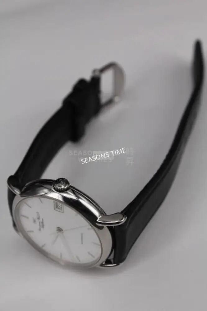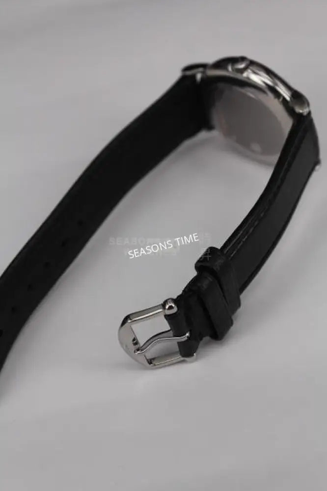 Bracelet/ Strap: Steel, Original Pin Buckle & Black Calf Leather Strap