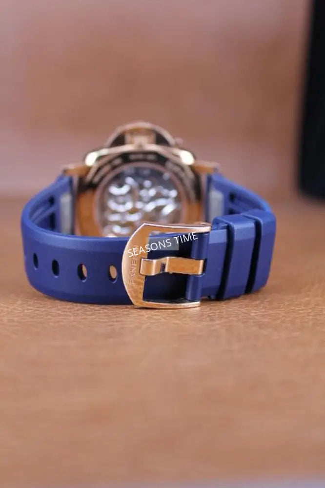 Bracelet/ Strap: 18K Rose Gold, Tang Buckle & Blue rubber Strap